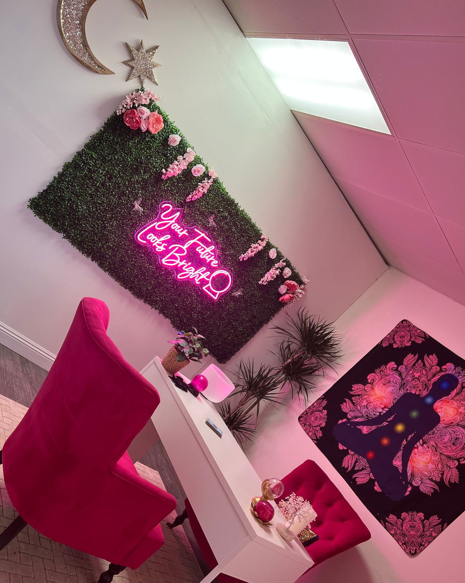 Step inside a space created to bring comfort, clarity, and connection. Every detail is designed to provide a calm and welcoming environment where you can relax, open your mind, and experience the guidance of your reading. Surrounded by crystals, celestial accents, and peaceful energy, my store is a sanctuary where insight and inspiration await you.